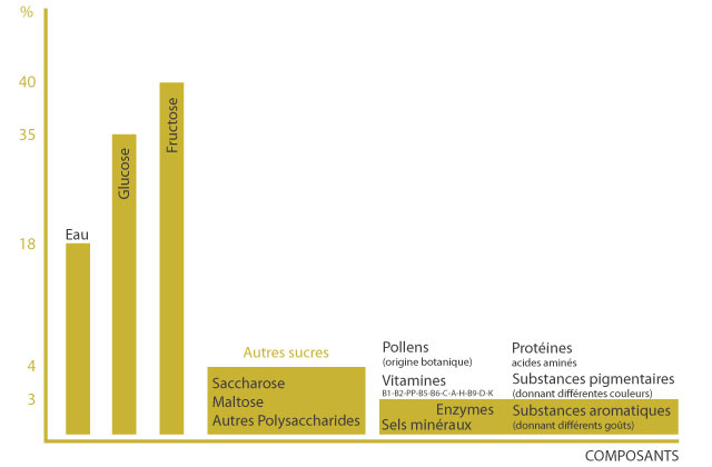 "C'est la denrée alimentaire produite par les abeilles mellifiques à partir du nectar des fleurs ou des sécrétions provenant des parties vivantes des plantes ou se trouvant sur elles, qu'elles butinent, transforment, combinent avec des matières spécifiques propres, emmagasinent et laissent mûrir dans les rayons de la ruche. Cette denrée alimentaire peut être fluide, épaisse ou cristallisée."